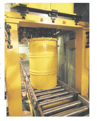 4.從空的鋼桶進入、設(shè)備自動對接、找螺栓位置、擰松桶蓋螺栓、抓取桶蓋、空桶離開去裝填區(qū);到裝填料后的桶子返回又一次自動對接、找螺栓孔位置、蓋桶蓋、擰緊螺栓到裝料桶離開,整個過程完全自動;